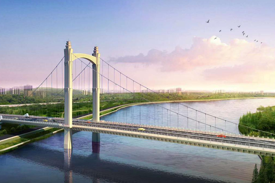 南屏二橋?yàn)殡p塔自錨式懸索橋,主跨150米。...